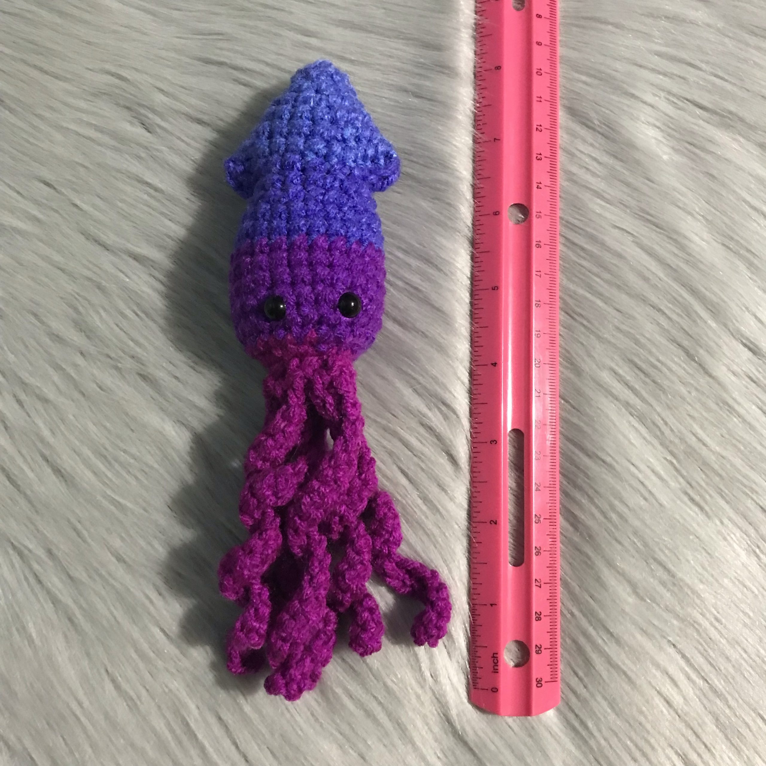 Each squid is made with acrylic yarn and approximately 7.5” in height.